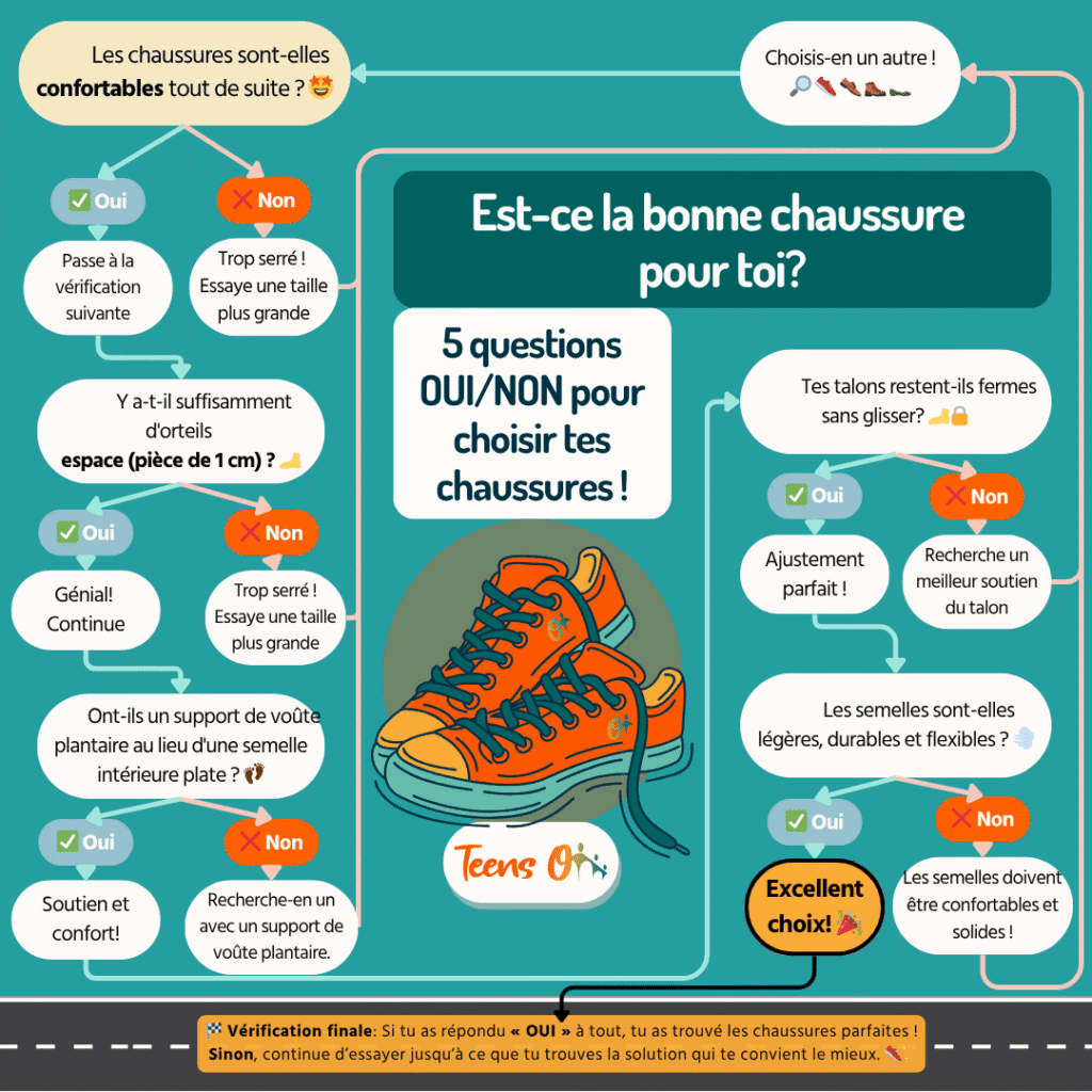 De bonnes chaussures sont essentielles pour soutenir tes articulations et ton corps. Une bonne chaussure doit :