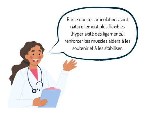 L’hyperlaxité peut aussi parfois causer des douleurs articulaires, surtout dans les petites articulations de tes mains et poignets, ce n’est pas toujours une fracture ! Ton ergothérapeute peut t’aider à évaluer cette douleur et te fournir des modifications ou peut-être une attelle ou un ruban adhésif spécifique pour soulager la douleur tout en étant en mesure de participer à tes activités quotidiennes et à tes sports.