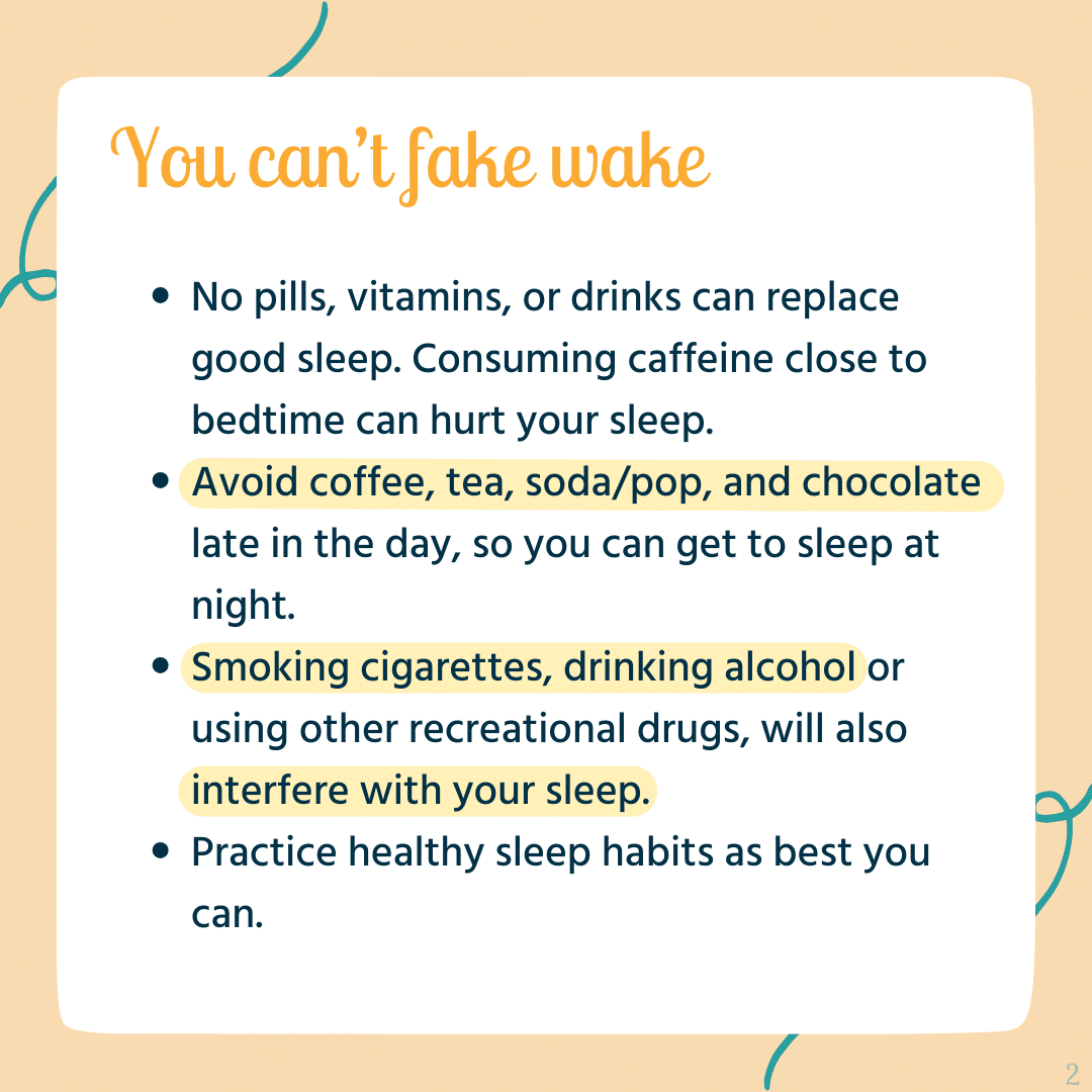 - Drinking less caffeine (e.g., coffee, tea, soft drinks, or energy drinks)