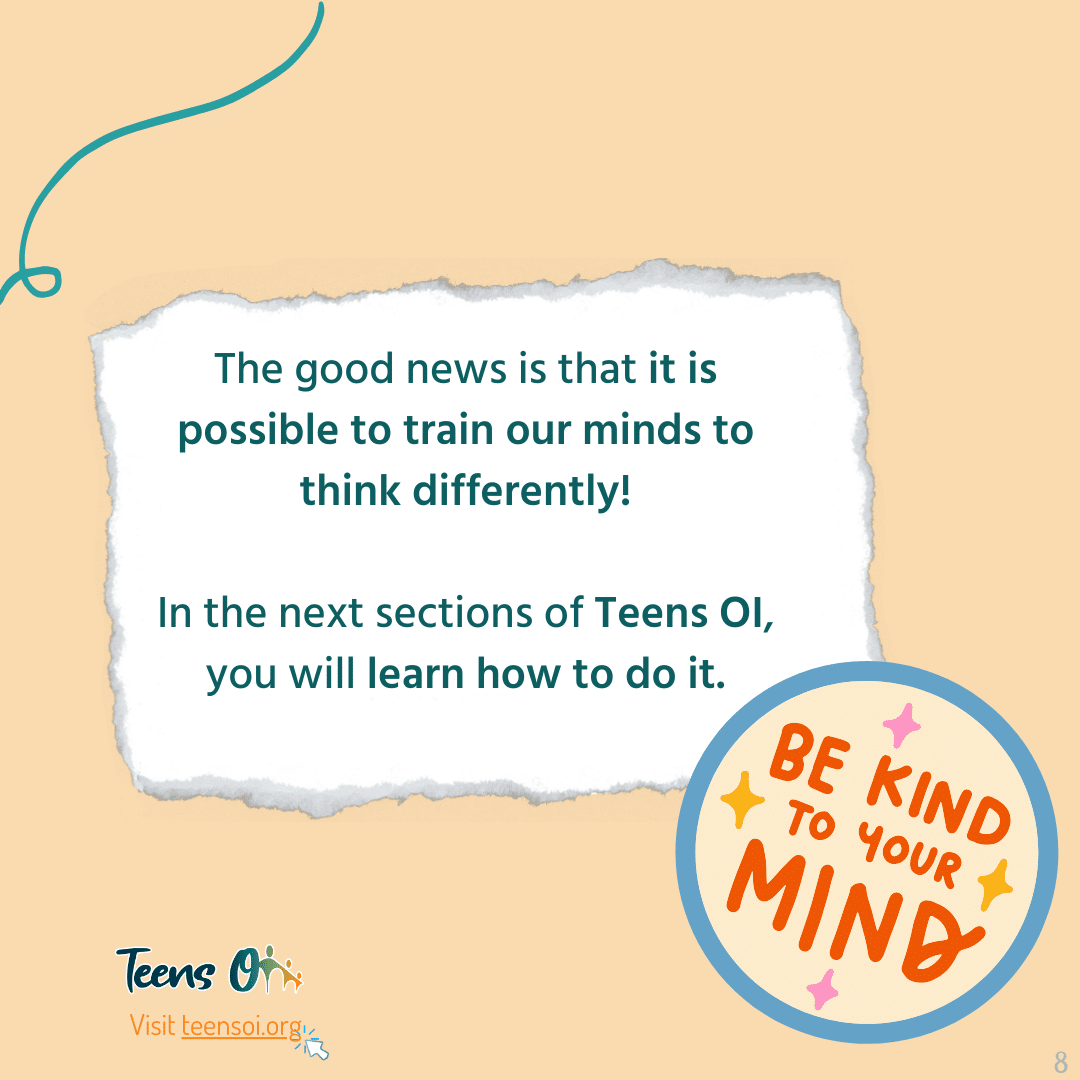The good news is that it is possible to train our minds to think differently. In the next sections, you will learn how to do it.