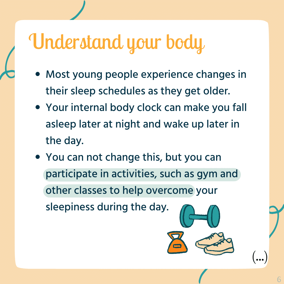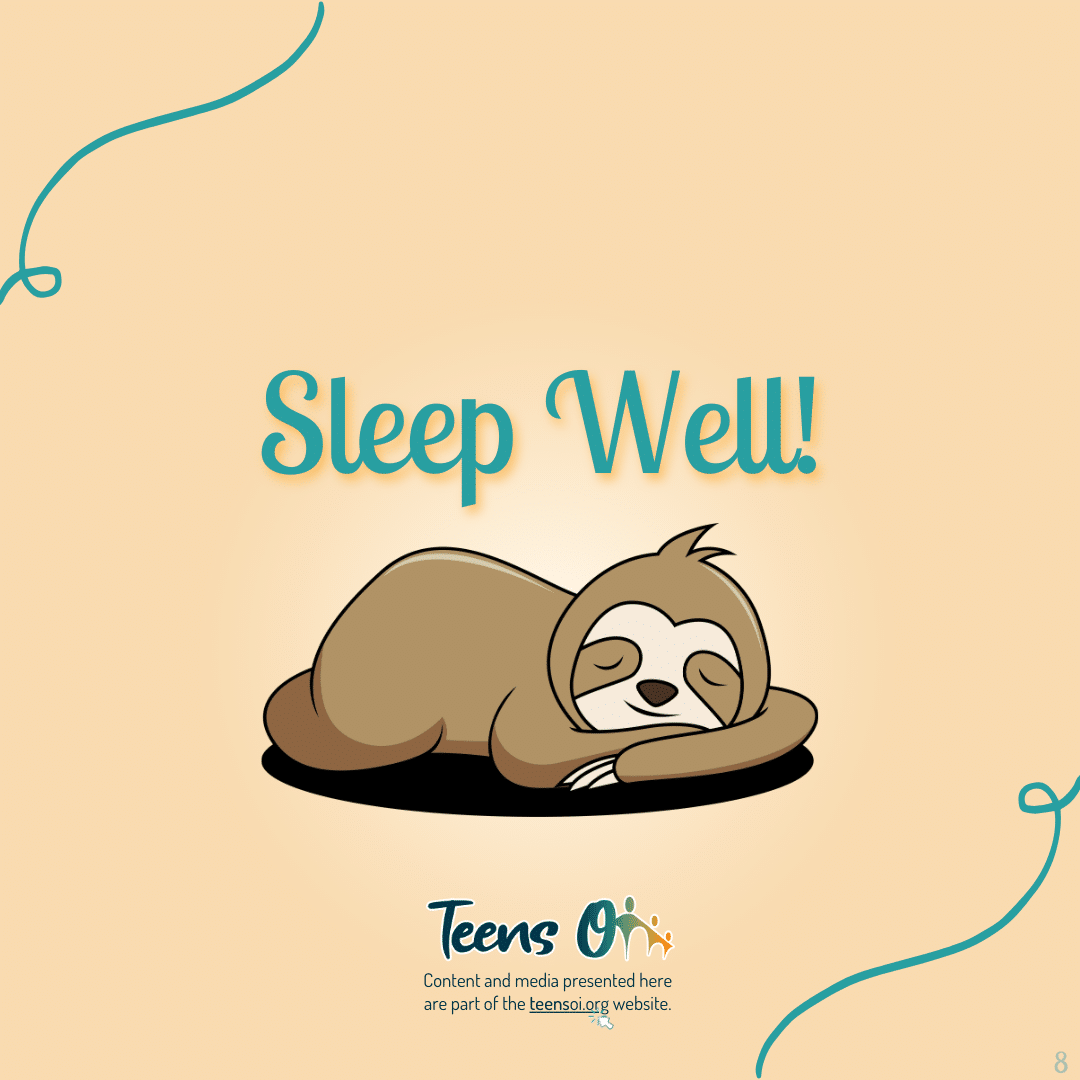 - Getting enough sleep (e.g., 8 to 10 hours per 24 hours)