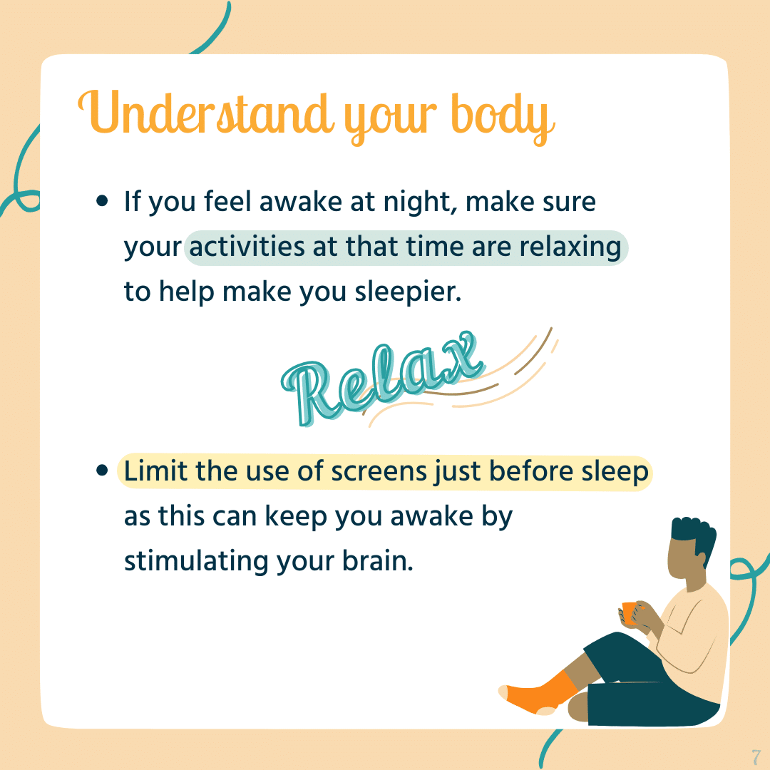 Sleep is an important part of your well-being. It can help you to concentrate and manage your stress better. Not getting enough sleep can make some aspects of your OI worse. If you don’t sleep, you will be tired and may be at a higher risk of falling or tripping. Lack of sleep over a long period of time can also lead to changes in your body metabolism and weight gain.